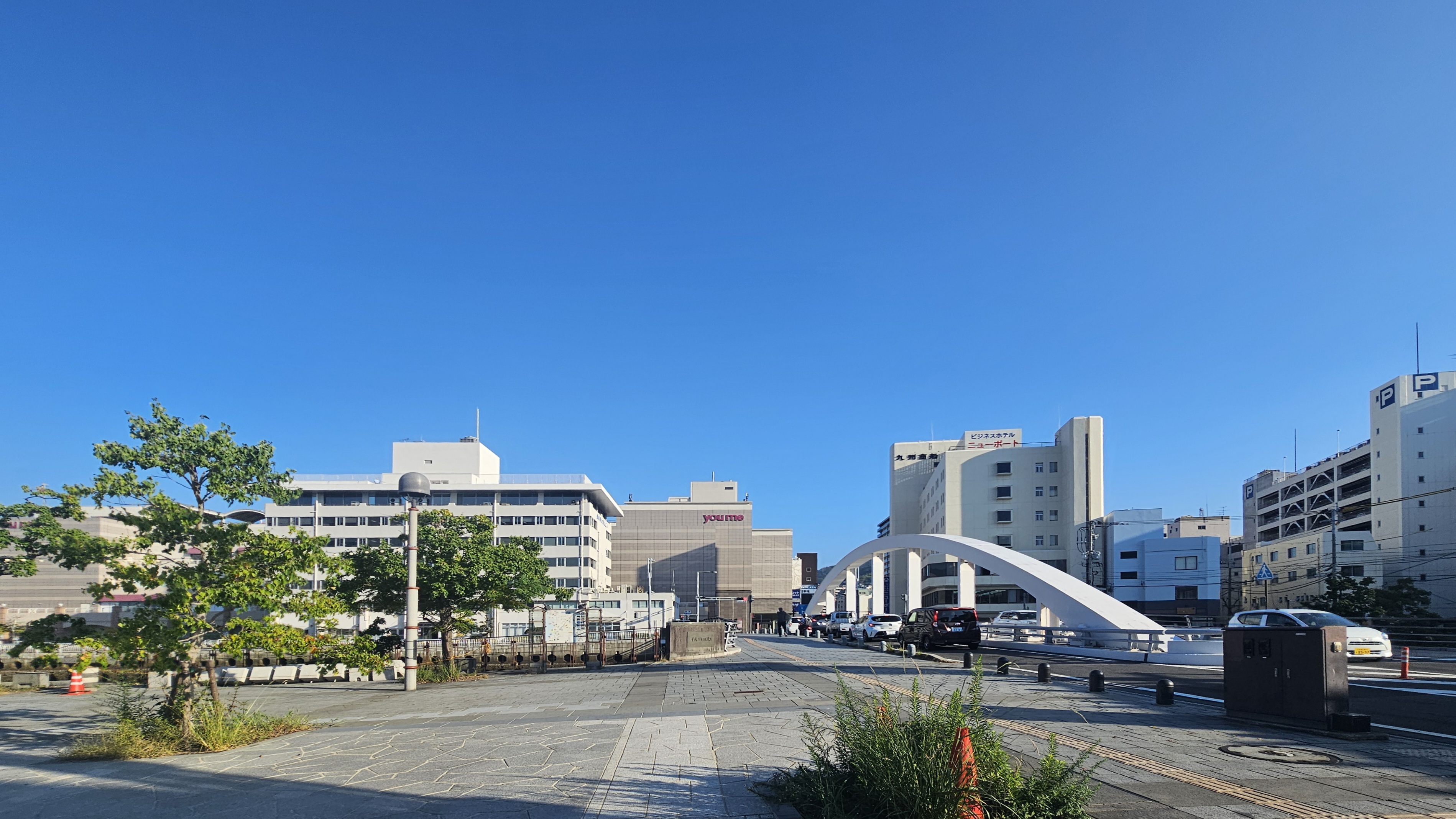 쭉 늘어선 상업지구, 유메타운, 나가사키현 미술관이 있다