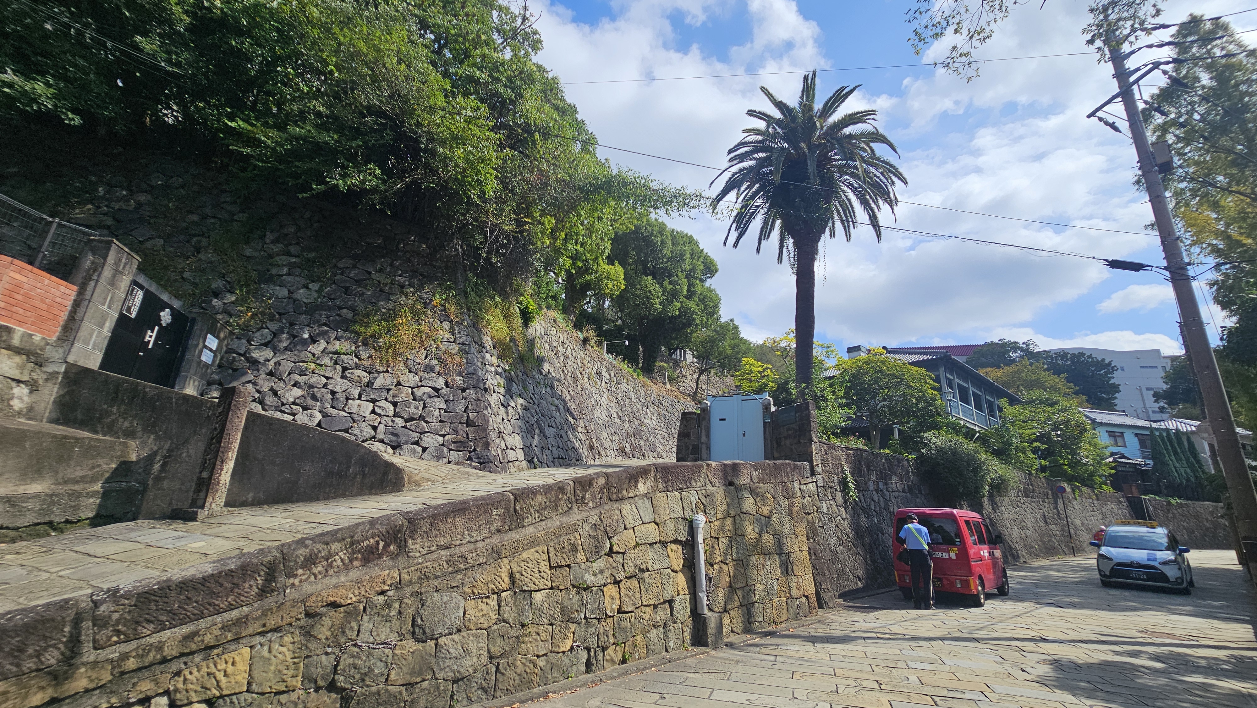 미나미 야마테 지역. 오우라 성당 , 글로버 가든 올라가는 언덕.