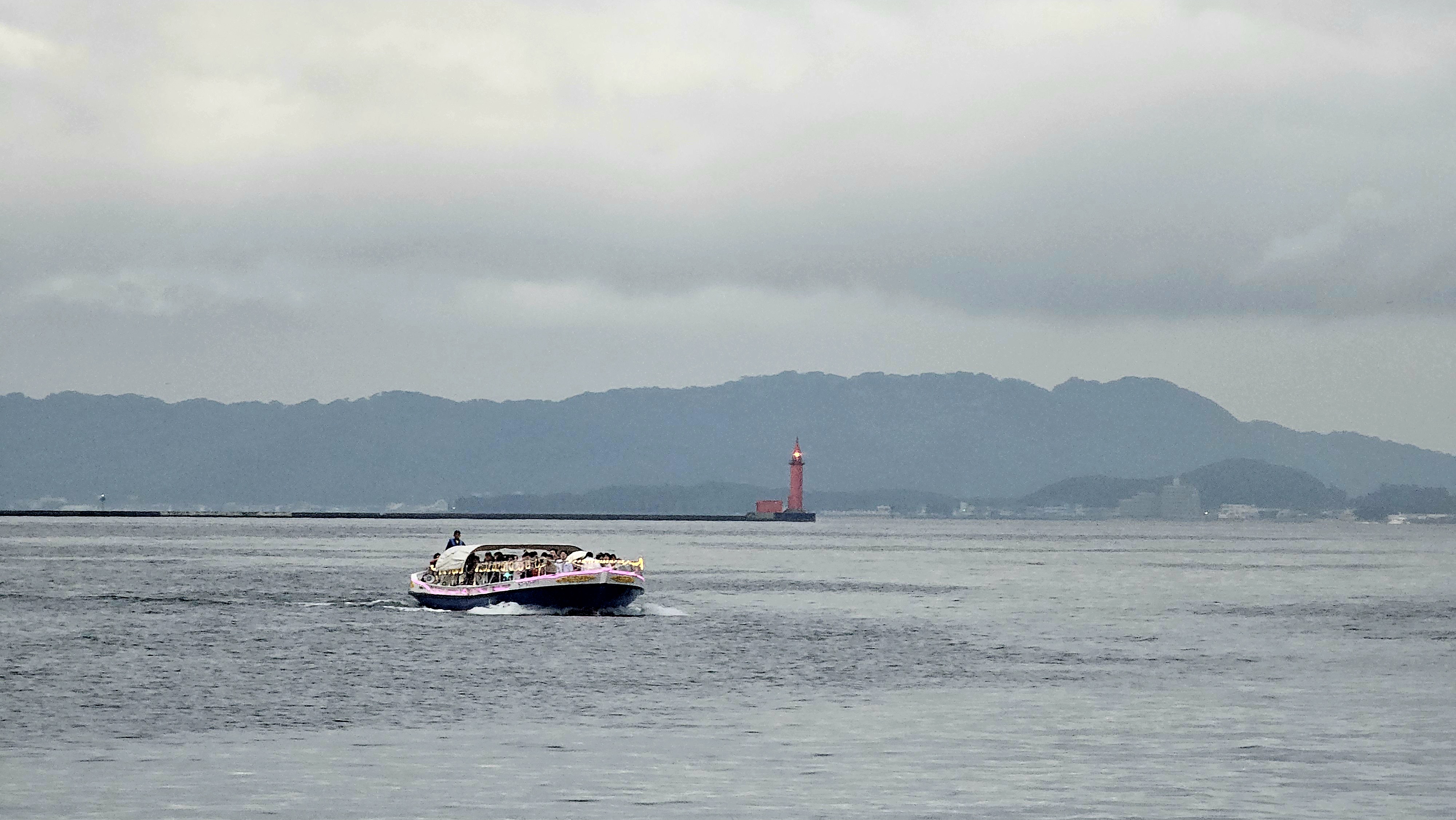 유람선 한 척이 유유이 시야에 들어와서 눈으로 따라가 본다