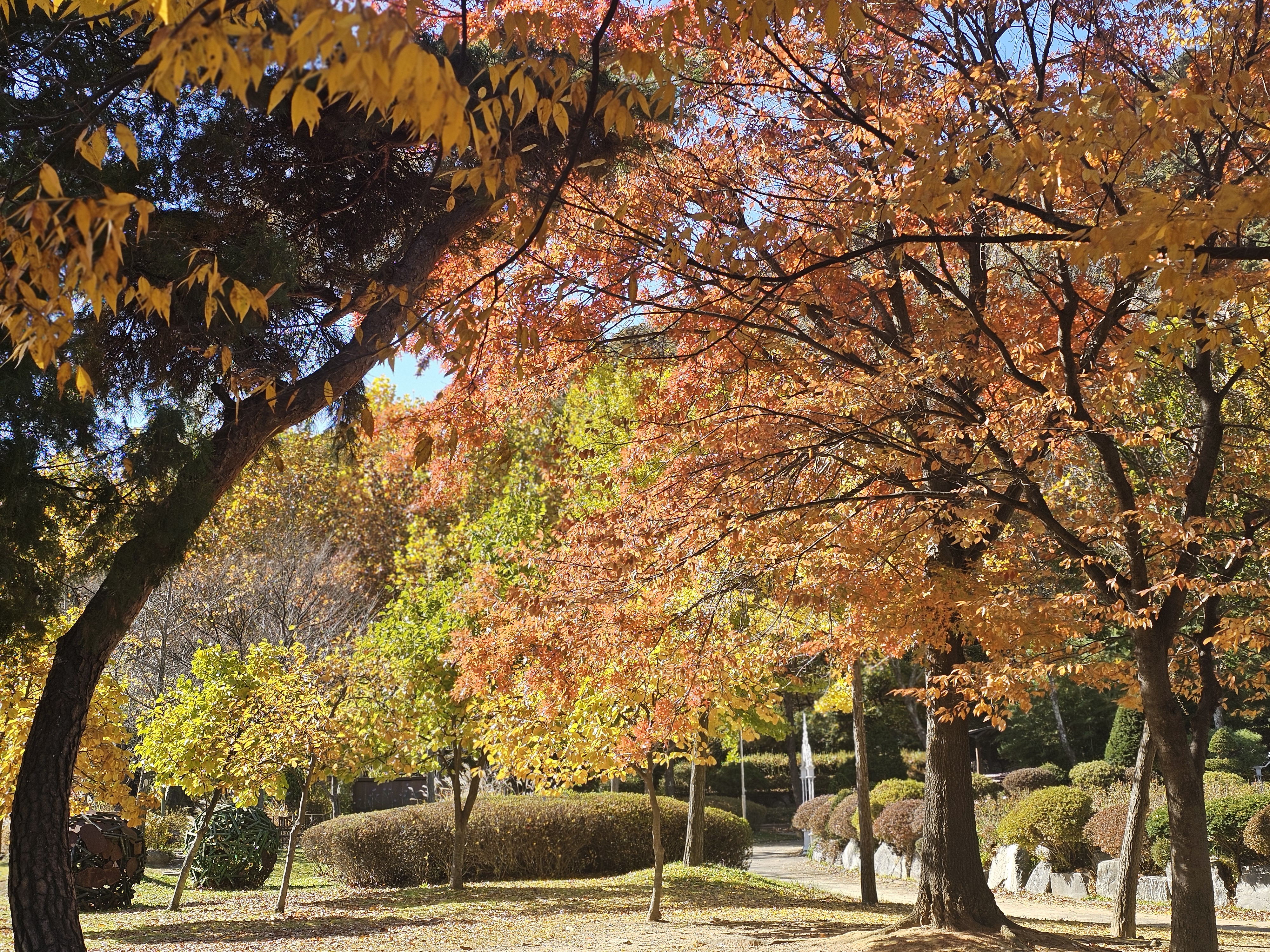 여전히 노랗게 빨갛게 고운 나뭇잎들이