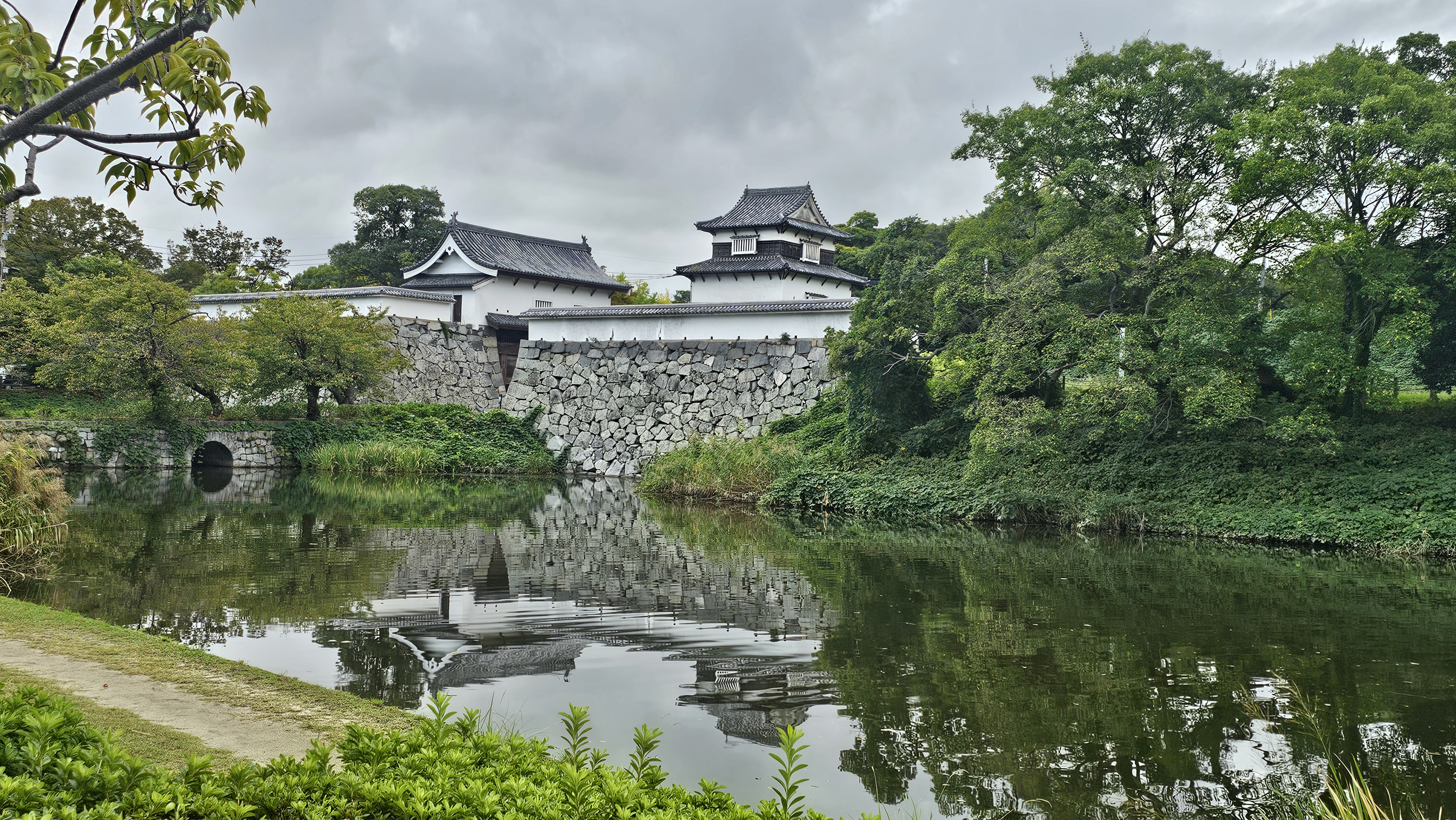 후쿠오카 성벽의 일부는 동심원 구조로 축성되었습니다. 각 성벽은 도시 위로 점점 더 높이 뻗어 있으며, 가장 중심에는 망루로 사용되던 천수각이 있습니다.