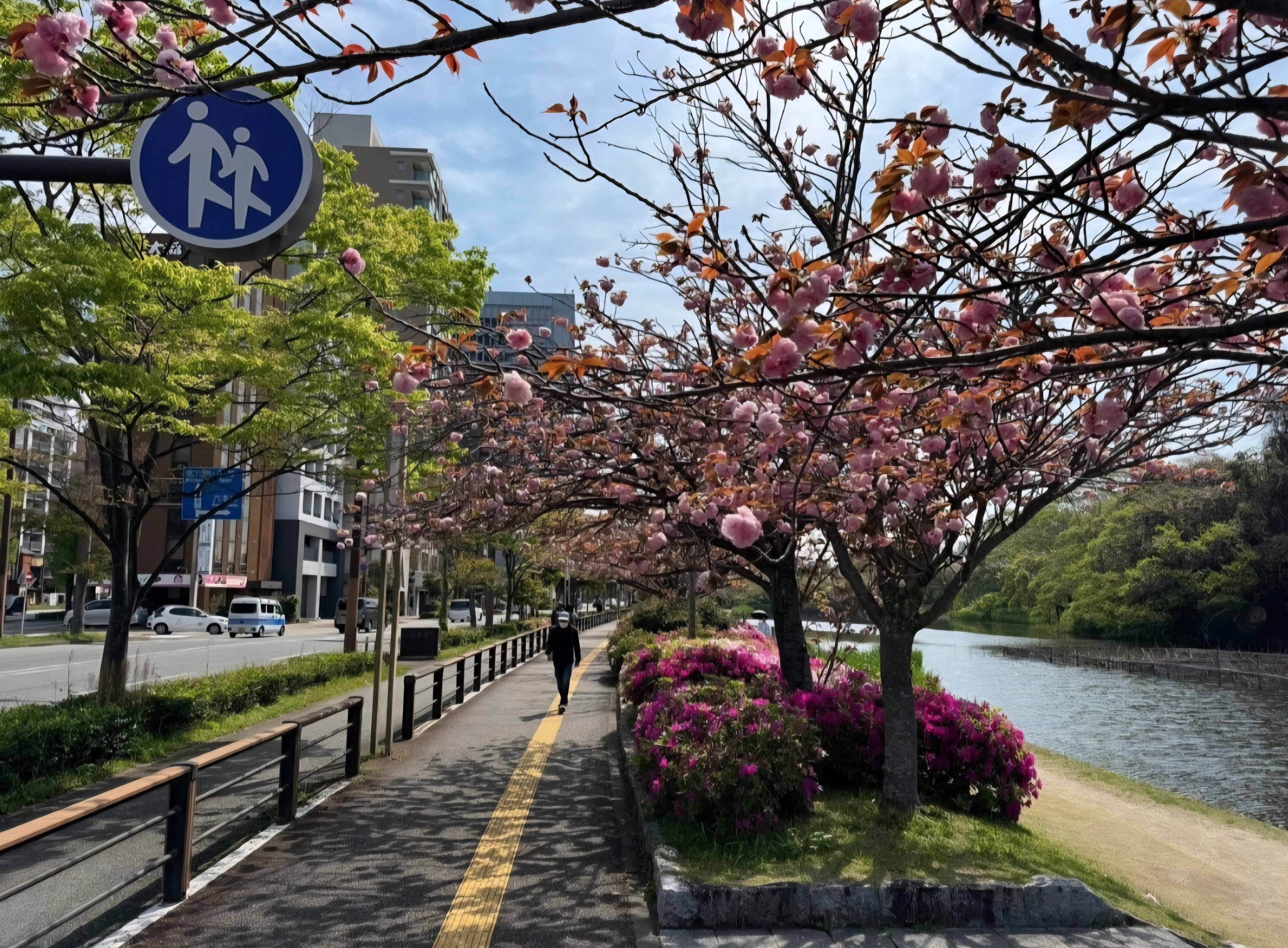 봄에 꽃필 때 이곳 가로수 사진을 한 장 가져왔다.