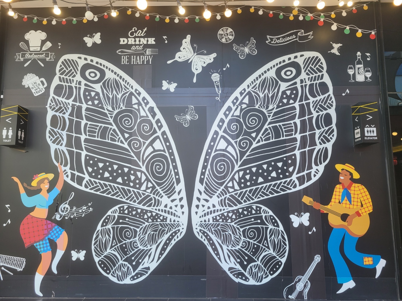 중국음식점에 매달린 빨간 전등이 인상적이다