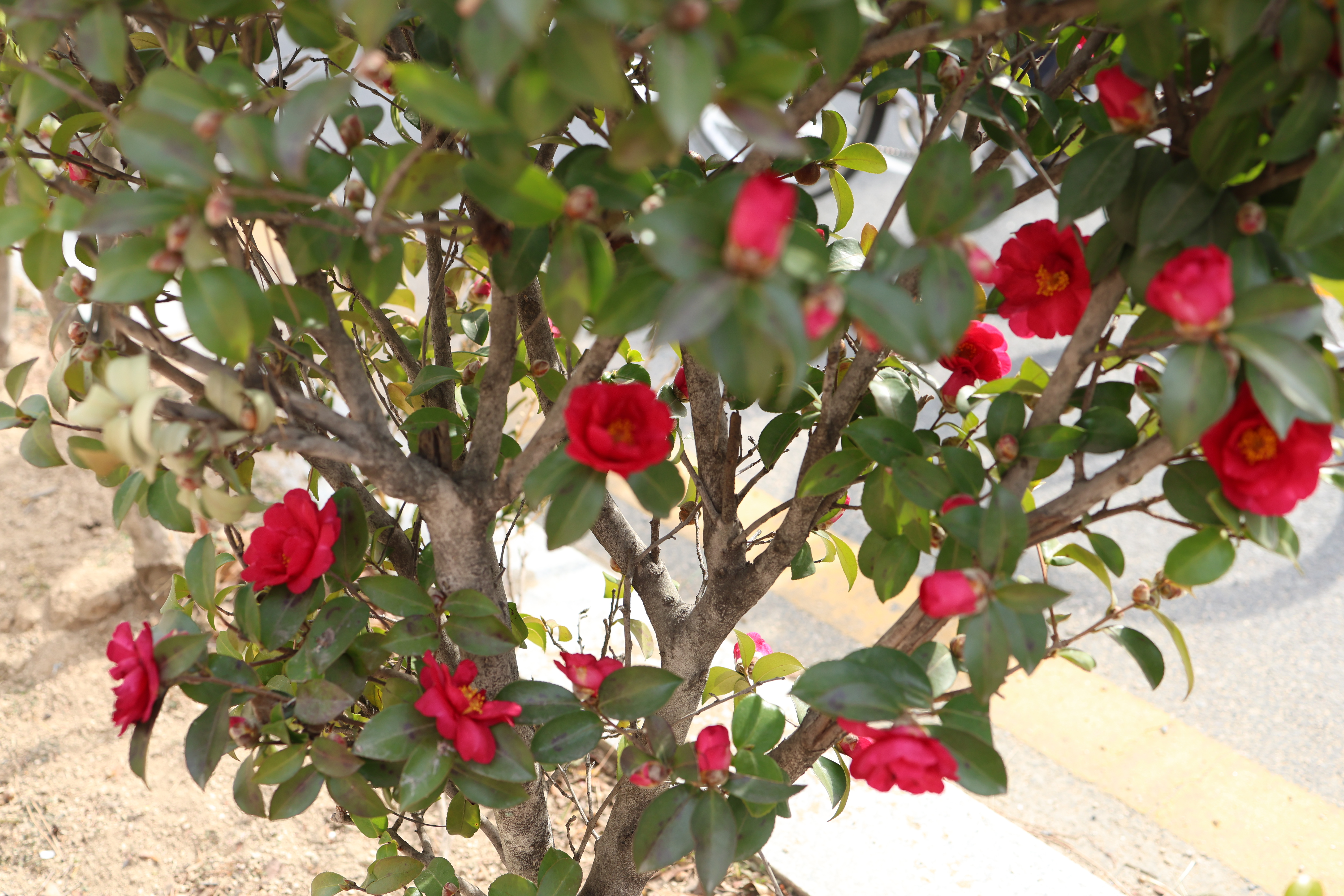 길거리 걷다가 만난 동백꽃.