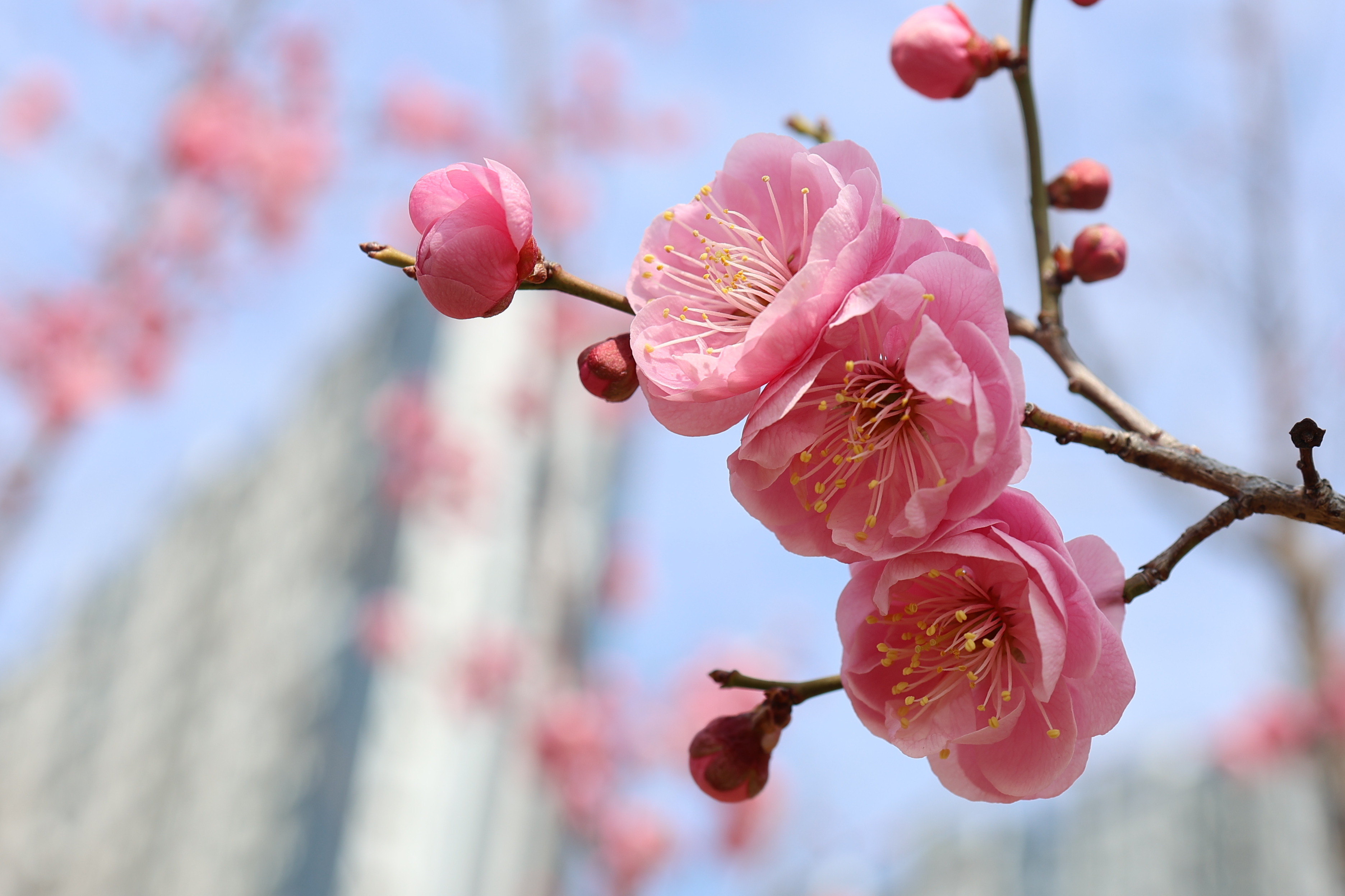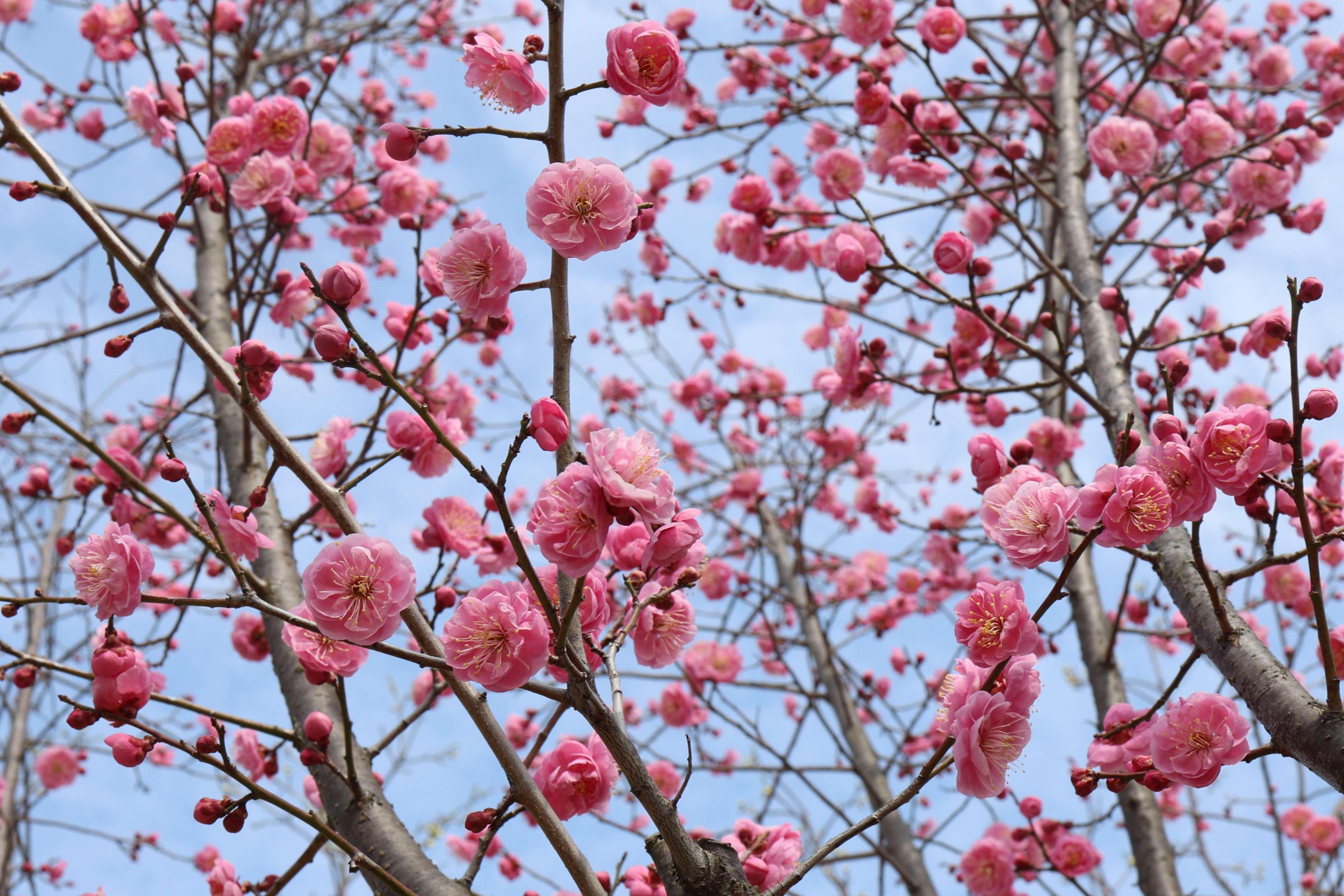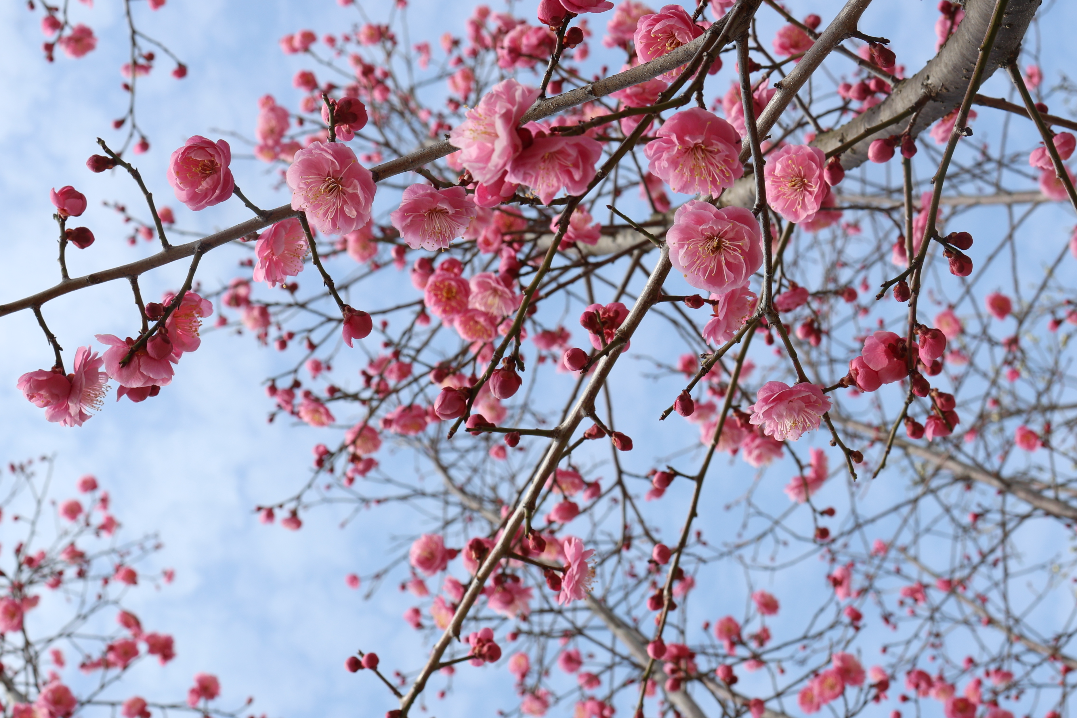 분홍겹매화가 몽글몽글 예쁘게 피고 있어서 높은 가지에 핀 꽃에 시선이 머문다