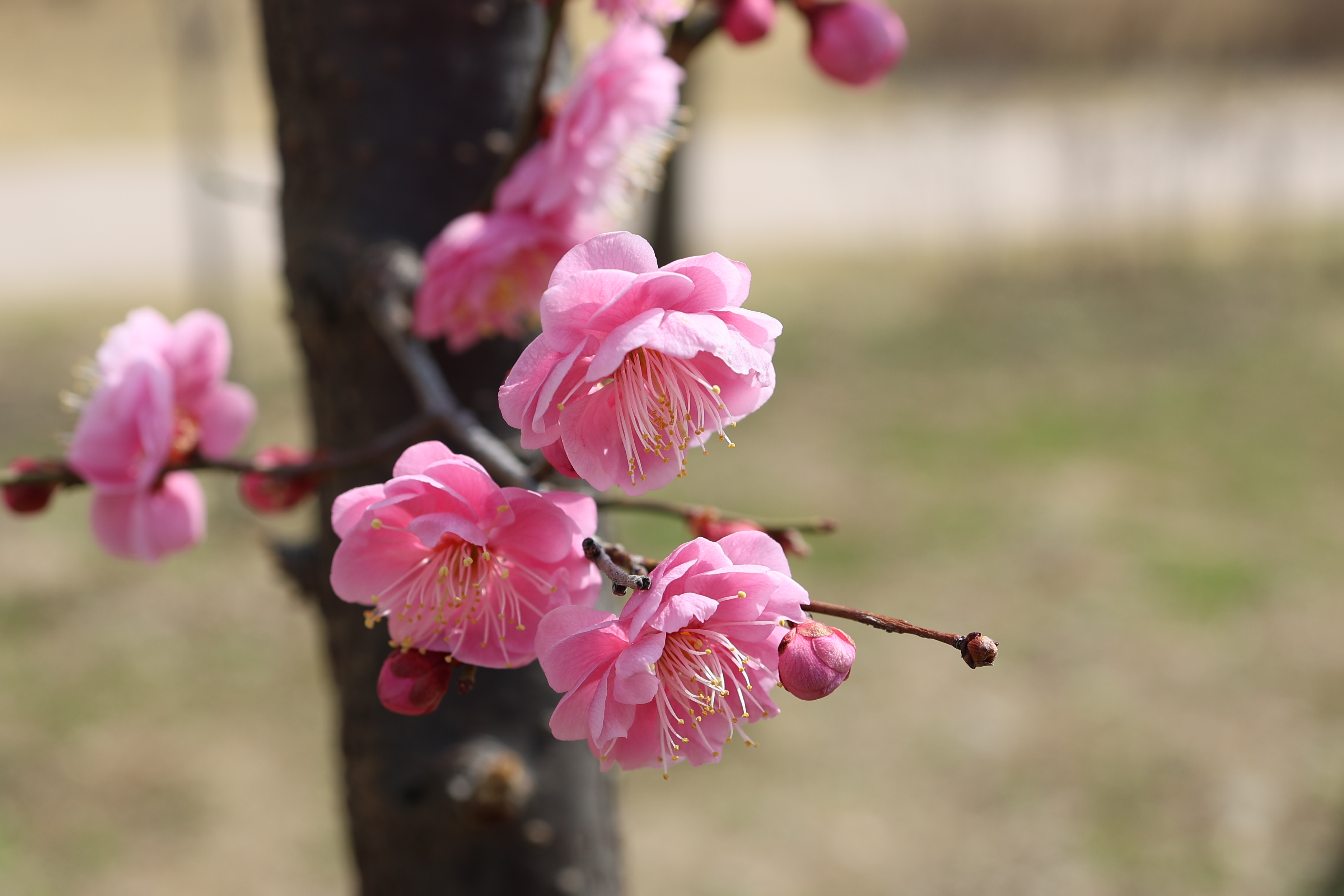 아직 연초록이 짙지 않아 풍경은 썰렁한데 매화나무 3종이 곱게 꽃 핀다.